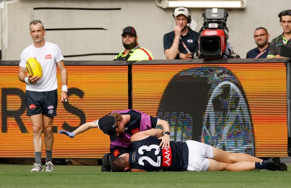 Blues star facing spell on sidelines, Scott believes Origin here to stayJacob Weitering came off injured during the first quarter of Saturday's AAMI AFL Origin clashсъбота, 14.02.2026